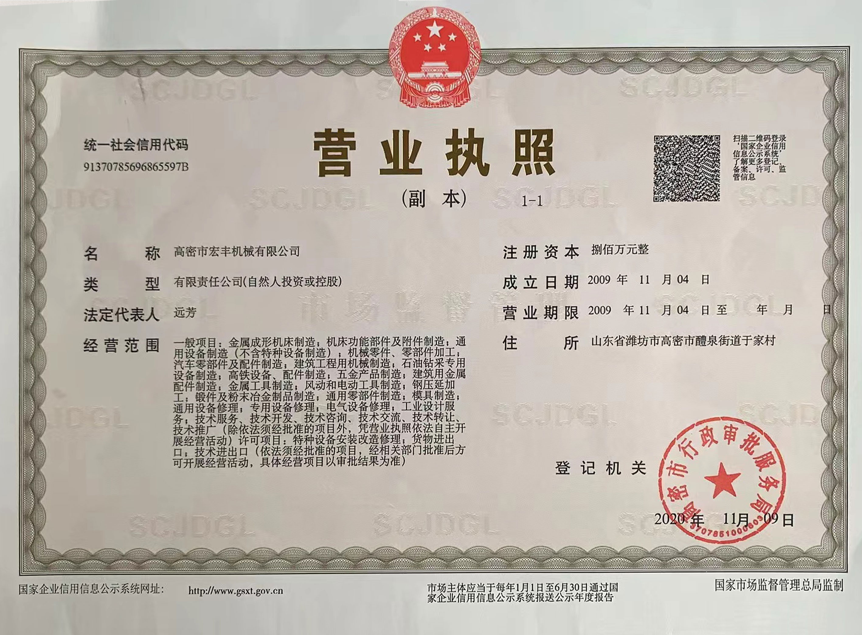 名 称 高密市宏丰机械有限公司